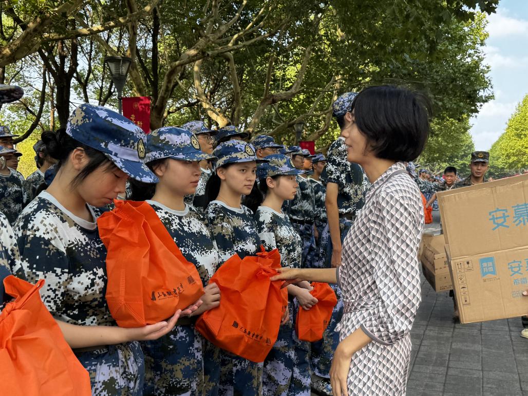 学院领导为军训的师生送上了慰问物资,同学们纷纷表示感谢。