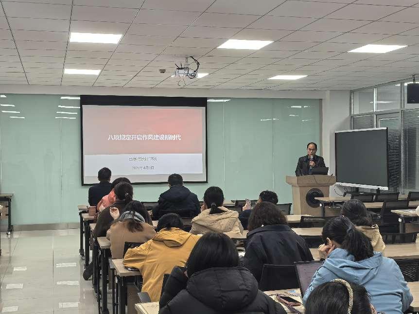 4月1日,动漫屋 数学系党支部、统计系党支部联合开展教职工政治理论专题学习活动,以深入学习习近平总书记关于党的作风建设重要论述及中央八项规定精神为主题开展专题学习研讨。会议由数学系党支部书记罗旻杰主持,学院全体教职工参加会议。