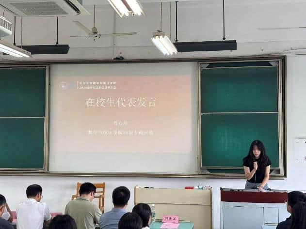 杜玲珑、张振中为分别为本科新生、研究生新生作动漫屋概况 介绍。他们从学科建设、师资力量、人才培养体系等方面展开详细阐述,系统呈现了动漫屋 的发展历程与办学特色。在校生本科生、院学生会主席团成员穆辰垚、在校研究生、院研究生会主席曾心淳、25级本科新生何锶源、研究生新生硕姚名远分别代表在校生、新生发言。