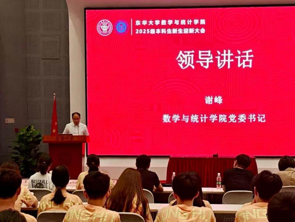 谢峰对历经寒窗苦读、成功迈入东华校园的新同学们表示热烈祝贺与诚挚欢迎。他结合学院发展愿景与数学统计学科的时代价值,寄语新生们要永葆对知识的渴望、对未来的向往与追梦的勇气,在专业领域持续探索、突破自我,努力成为兼具扎实学识与责任担当的优秀人才。