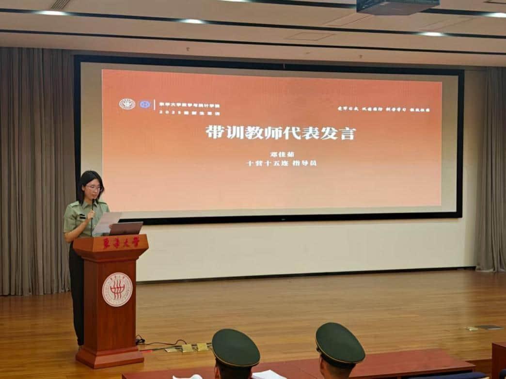 谢峰为大会作开训动员讲话。他表示,军训是大学生思想政治教育的重要环节,是增强国防意识、锤炼意志品质、培养集体荣誉感的实践课堂。他希望同学们严格要求自己,服从指挥、刻苦训练,以饱满的热情和昂扬的斗志完成军训任务,展现数统学子良好的精神风貌。
